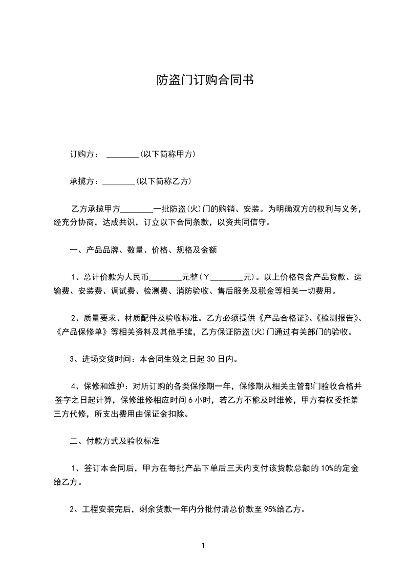 防盗门订购合同