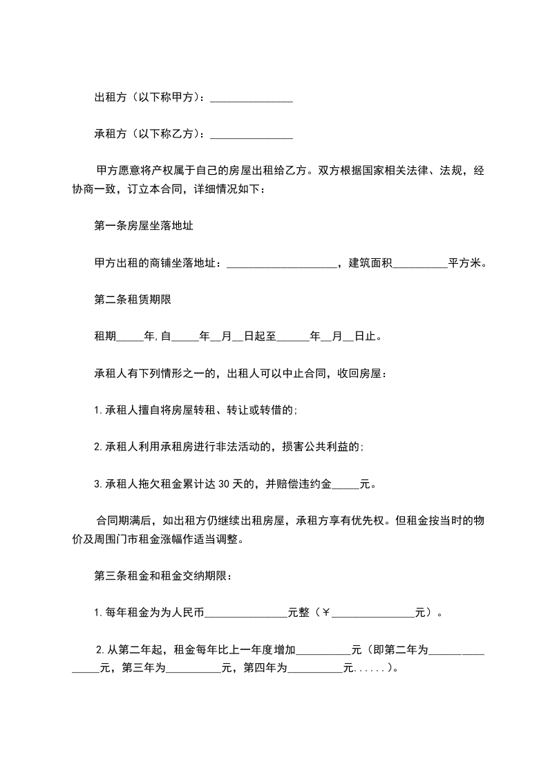 2.从第二年起,租金每年比上一年度增加__________元(即第二年为_______________元,第三年为__________元,第四年为__________元......)。