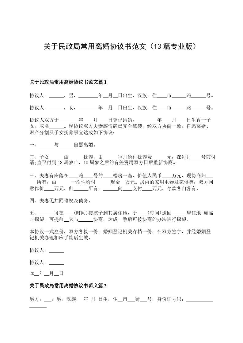 民政局常用离婚协议篇13
