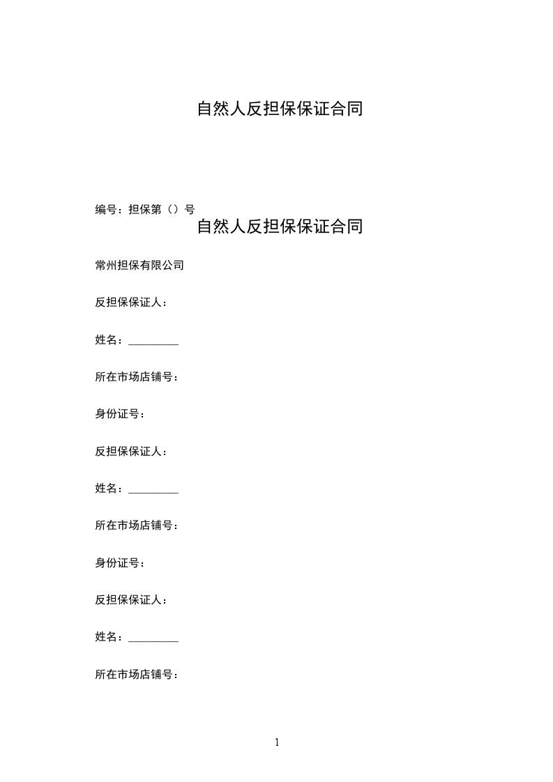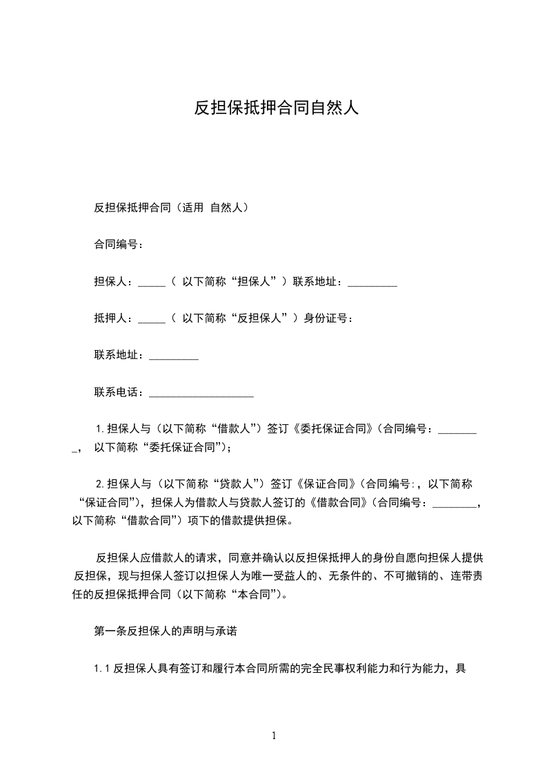 自然人反担保保证合同