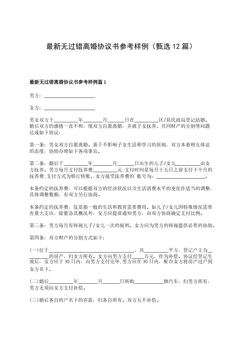 有子女无过错离婚协议参考样例篇12
