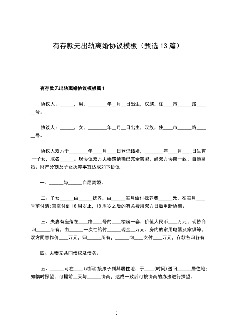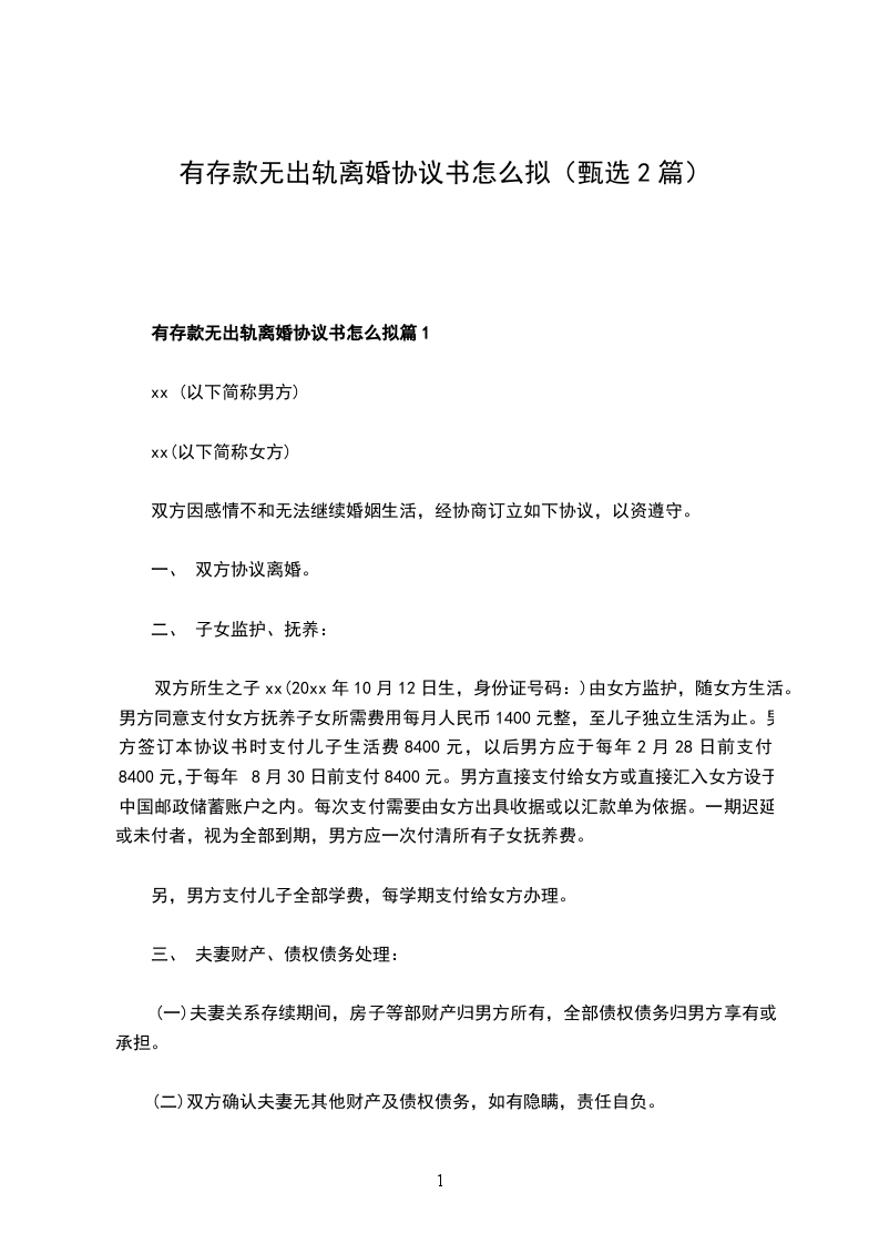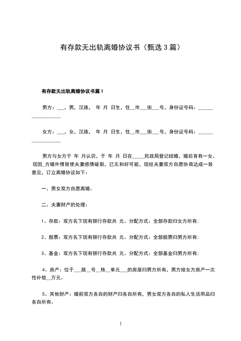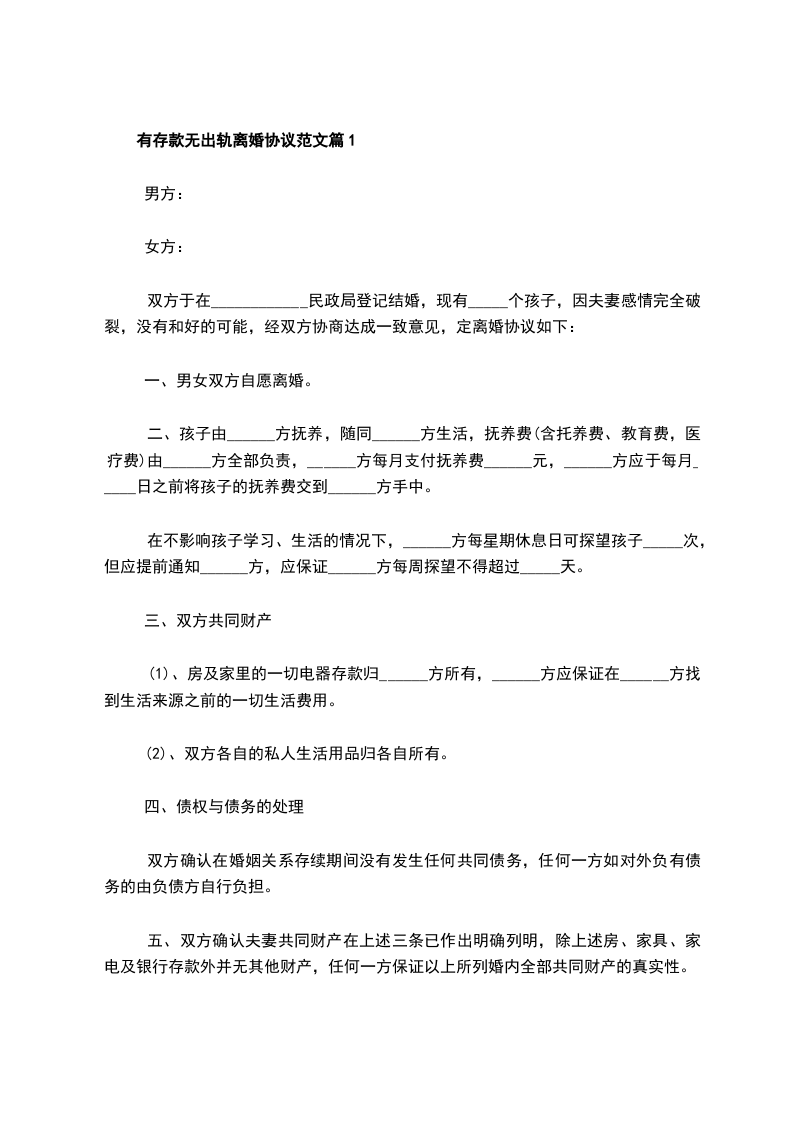 有存款无出轨离婚协议书参考样式篇1