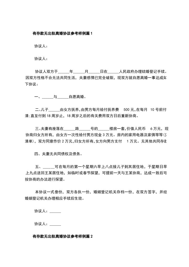 有存款无出轨离婚协议书参考样式篇2