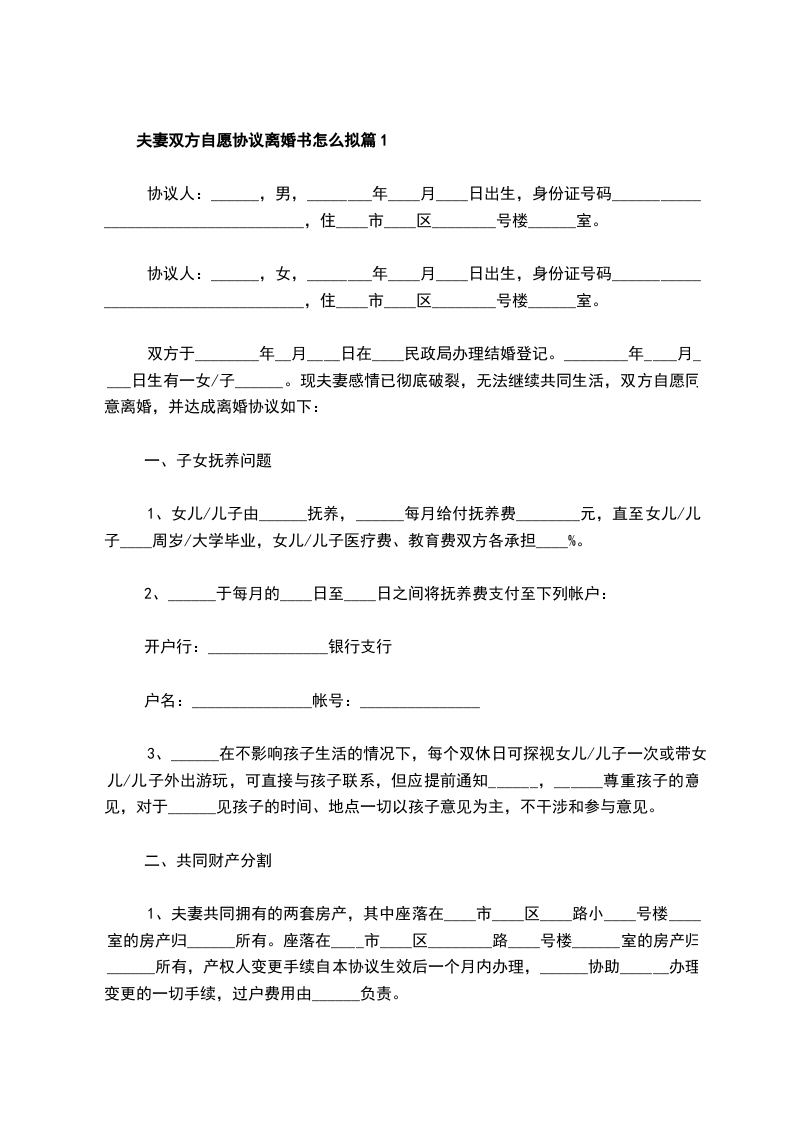 2024年夫妻双方自愿离婚协议书怎么拟篇2