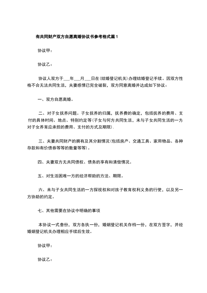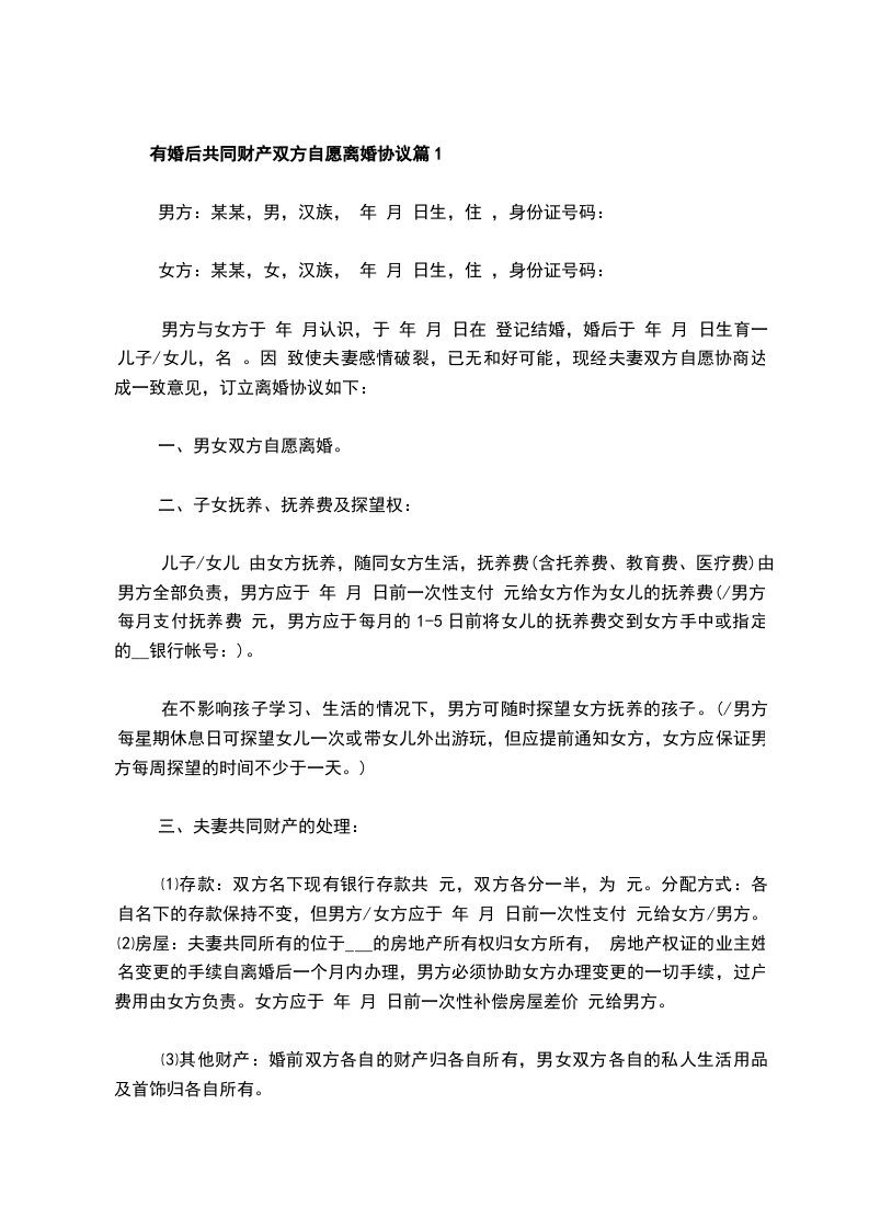 本协议一式_______份,双方各执_______份,婚姻登记机关存档_______份,在双方签字,并经婚姻登记机关办理相应手续后生效。