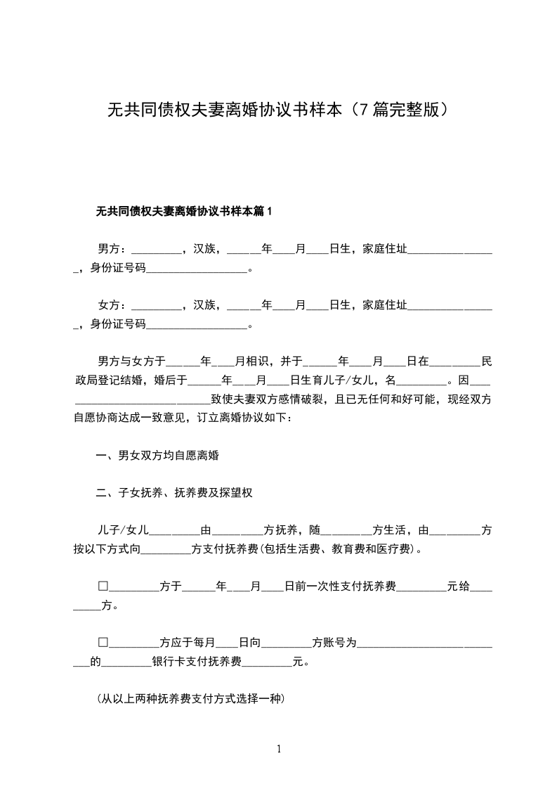□双方确认在婚姻关系存续期间没有发生任何共同债务,任何一方如对外负有债务的,由负债方自行承担。