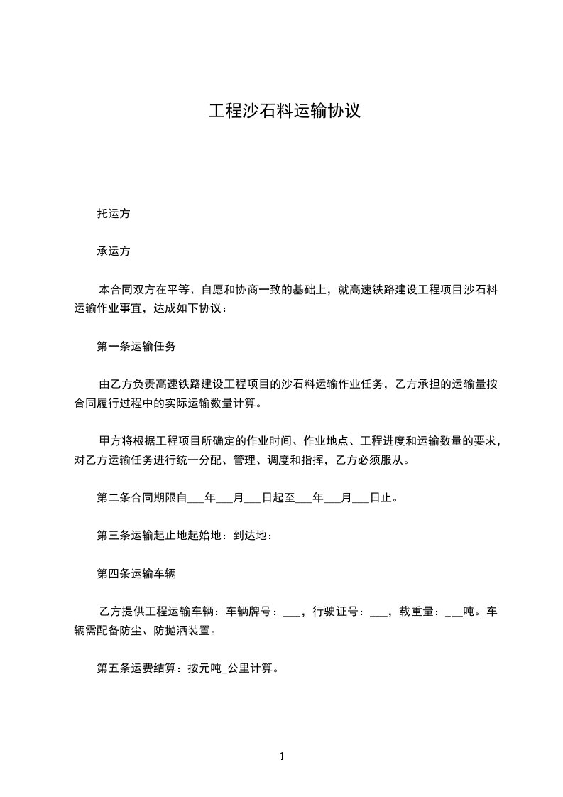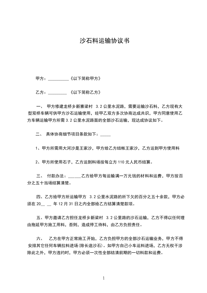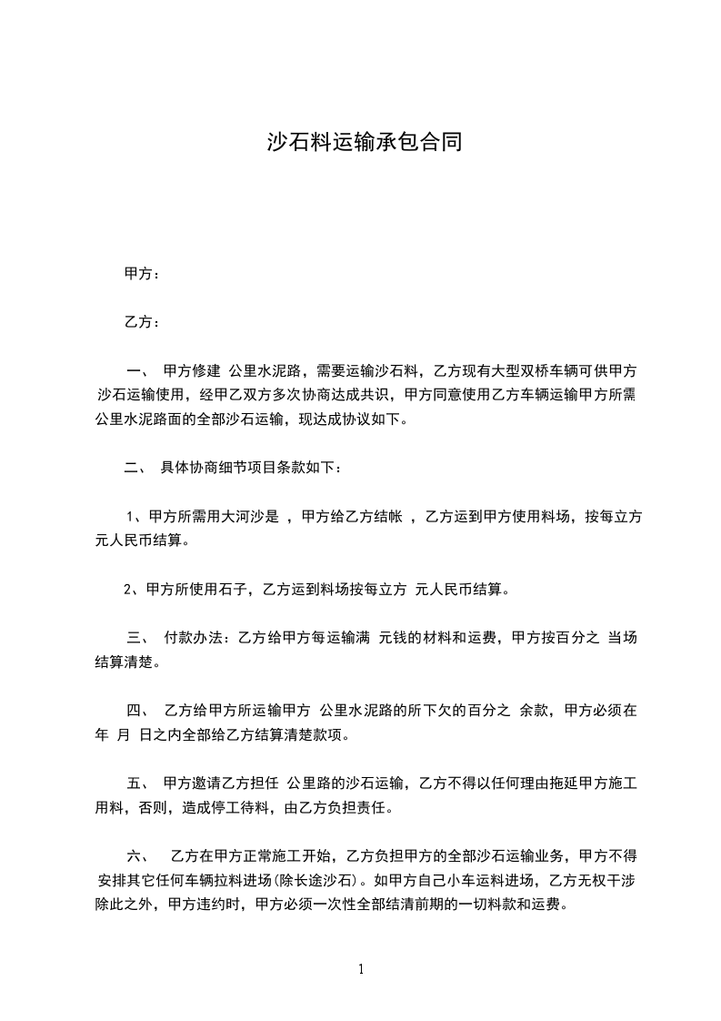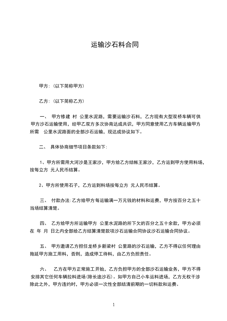 1、甲方承建所需沙石,图纸方量由乙方承运到基础。