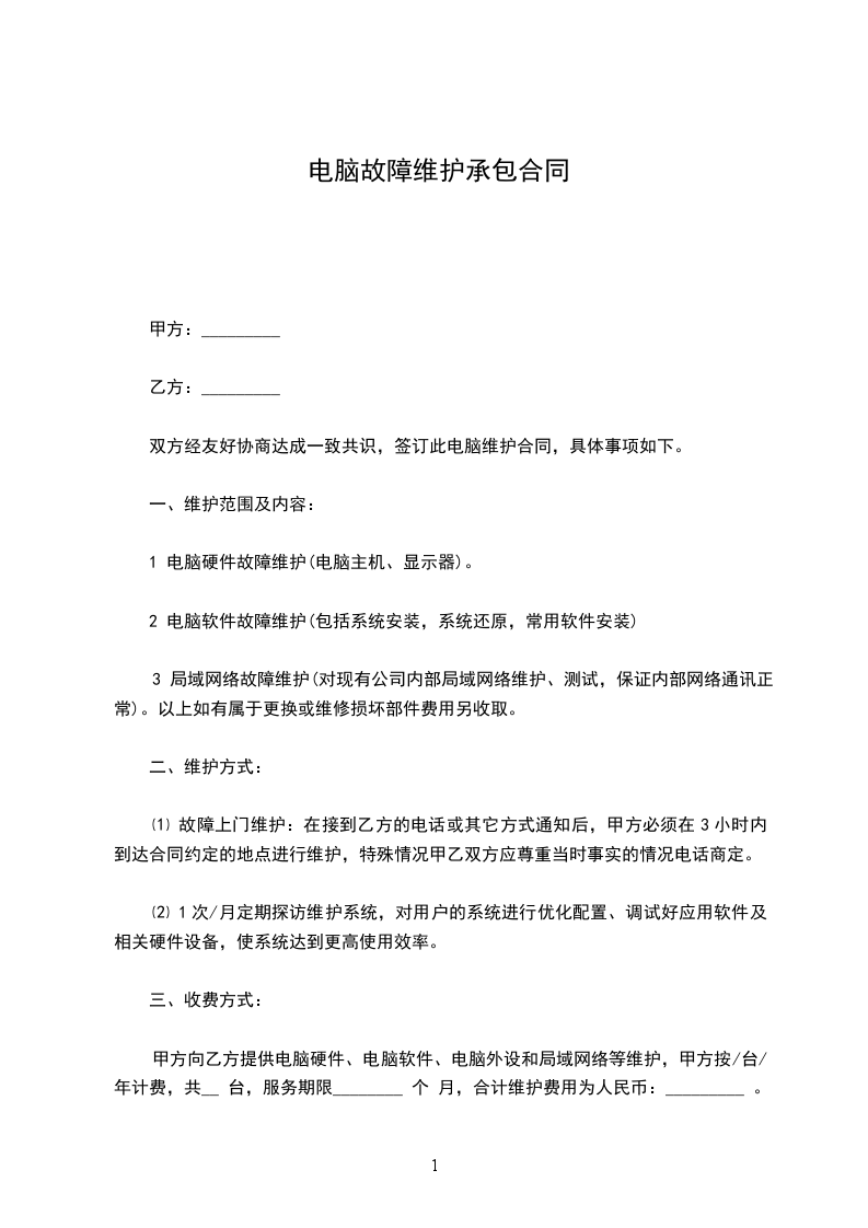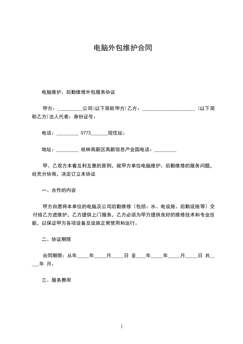 甲、乙双方本着互利互惠的原则,就甲方单位电脑维护、后勤维修的服务问题,经充分协商,决定订立本协议