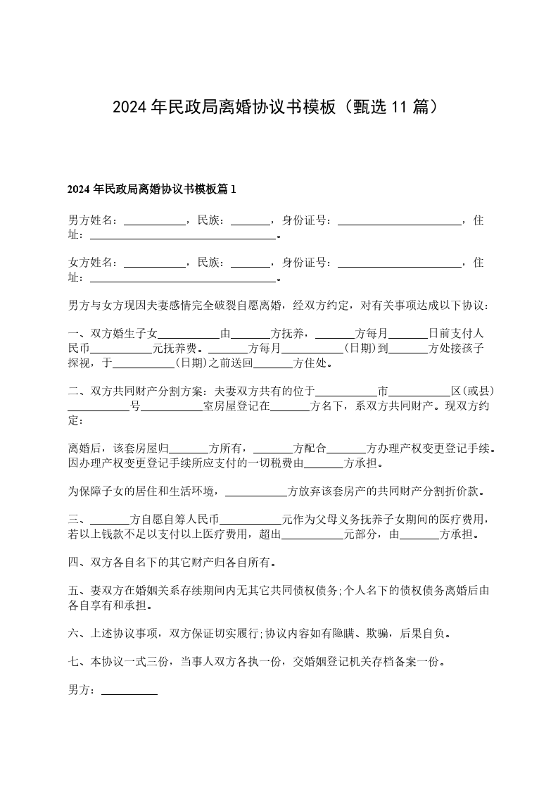 十、本协议一式_____份,双方各执_____份,民政局存档_____份。