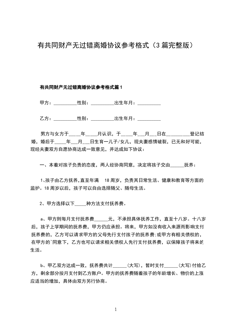 有共同财产无过错协议离婚范本模板篇1