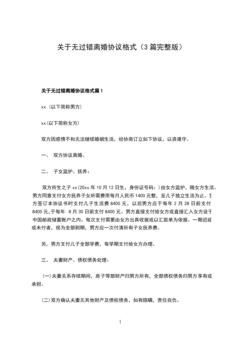 有共同财产无过错协议离婚范本模板篇3