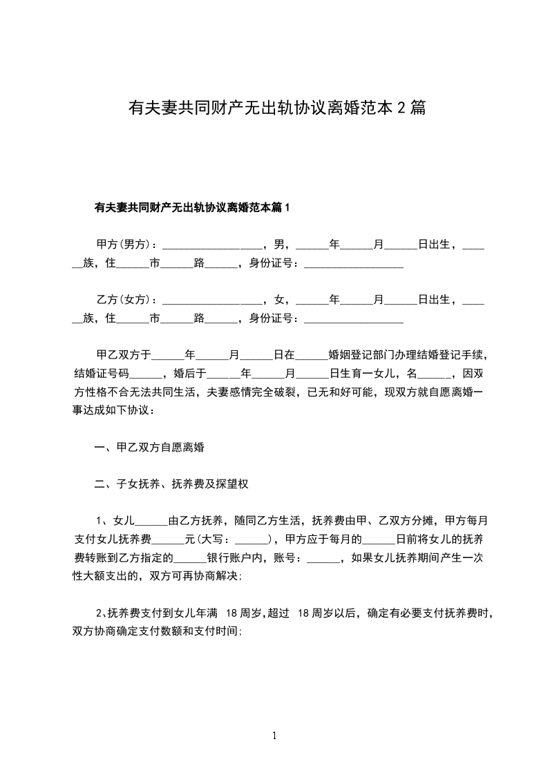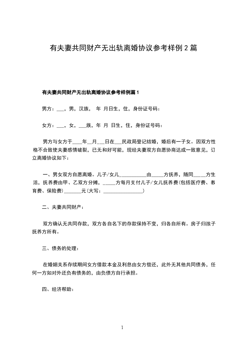 1、甲乙双方确认在婚姻关系存续期间无共同债务;