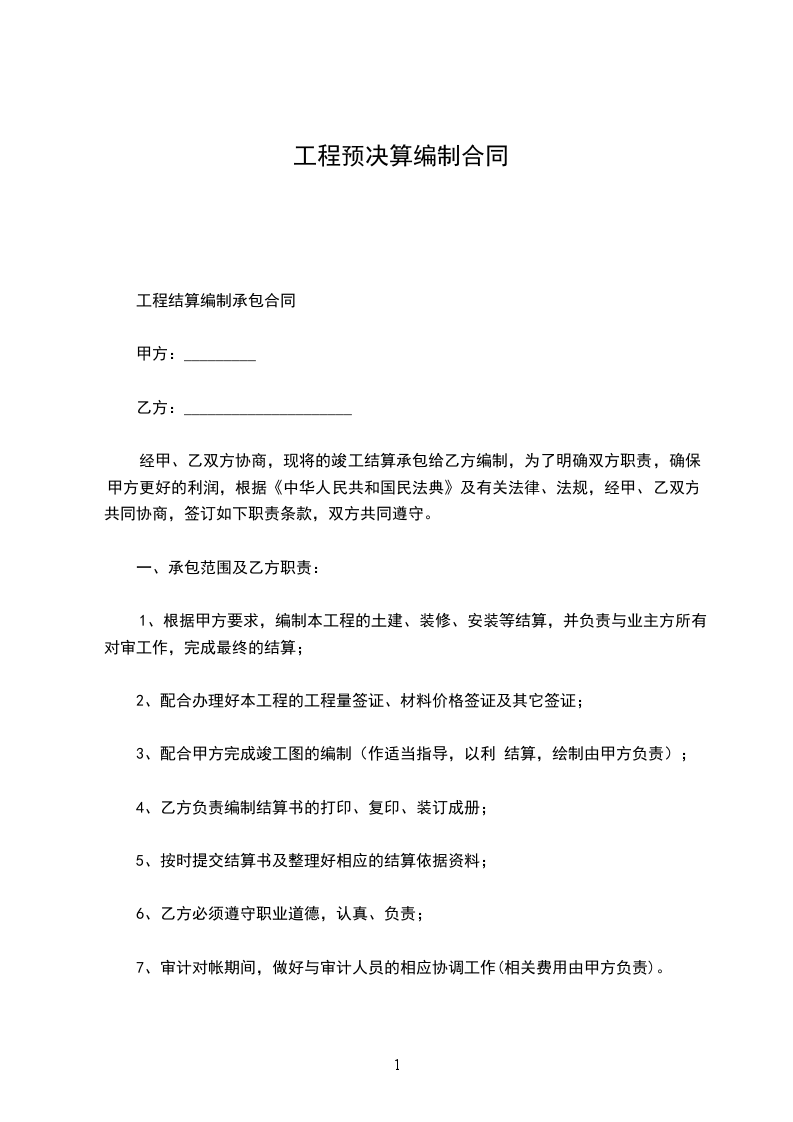 工程结算编制承包合同