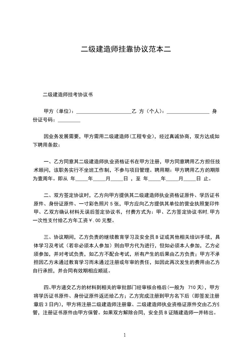 因发展需要,甲方需聘用国家注册二级建造师市政专业,经过真诚协商,双方达成如下聘用条款:
