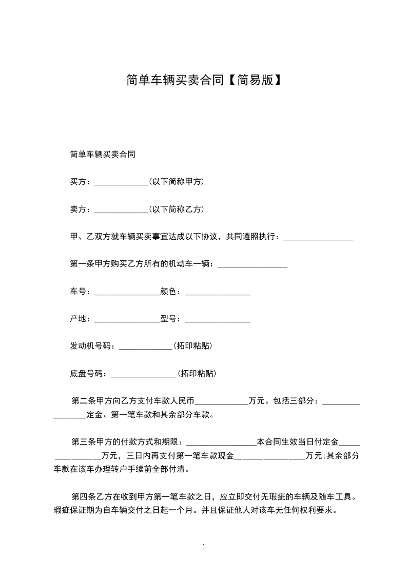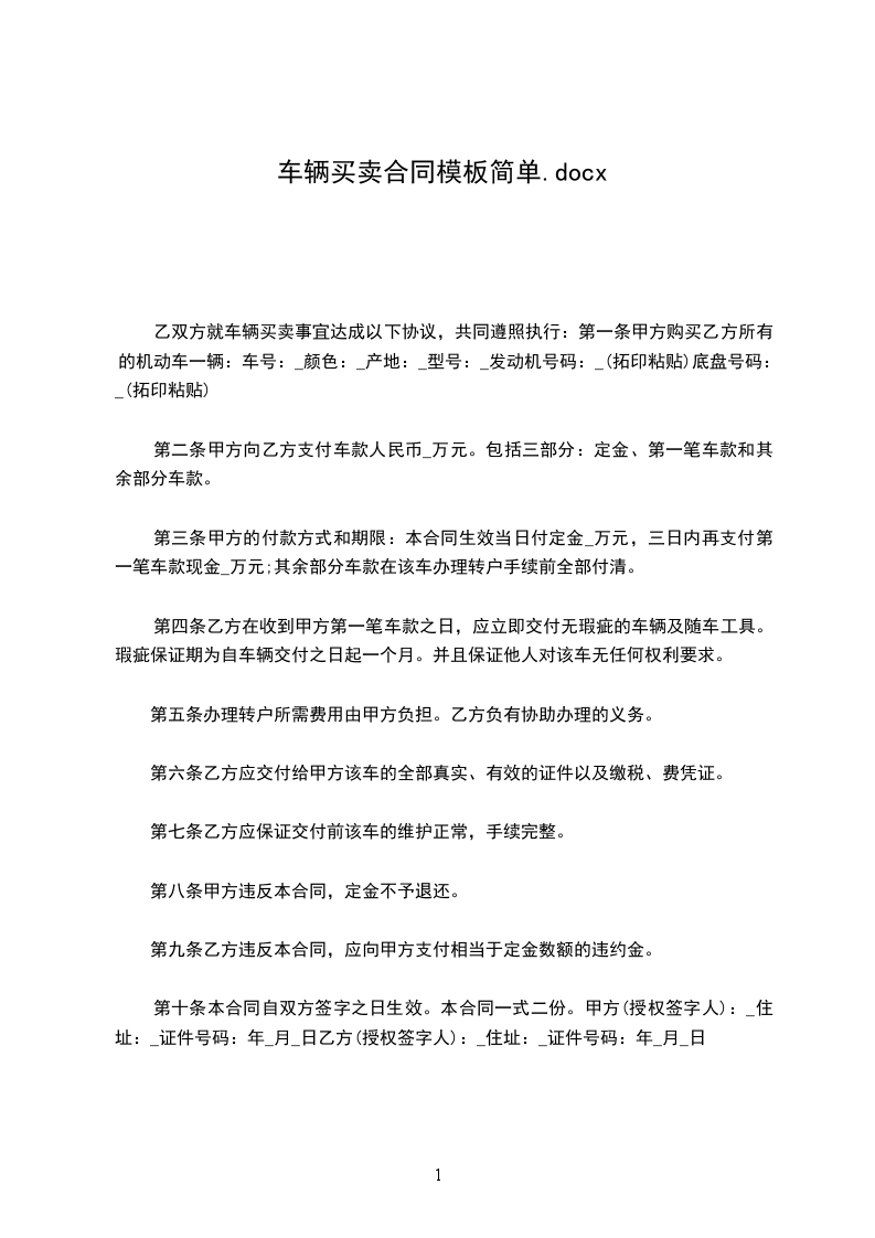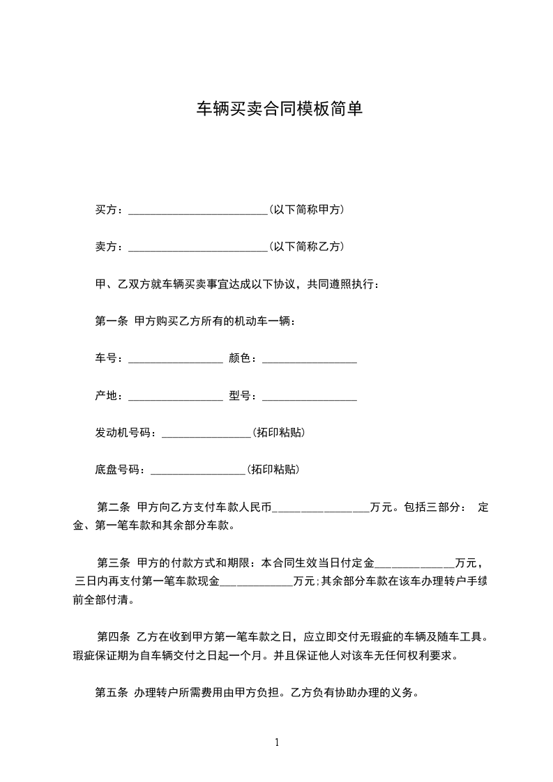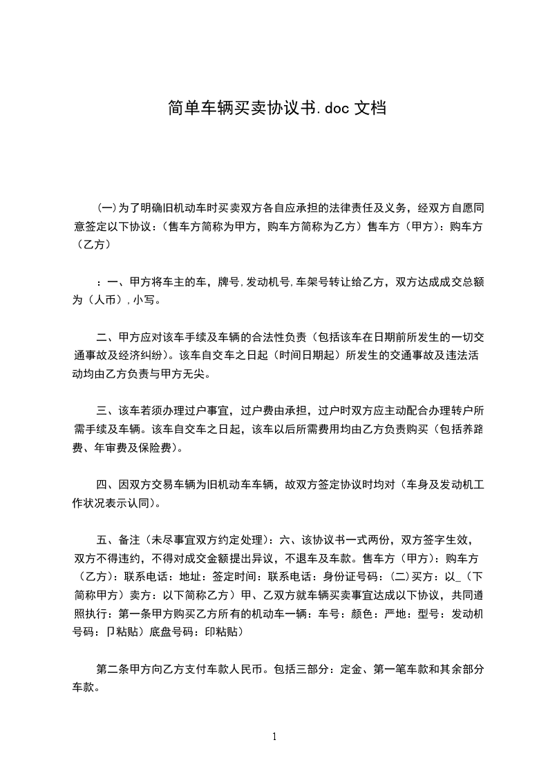 第一条 甲方购买乙方所有的机动车一辆: