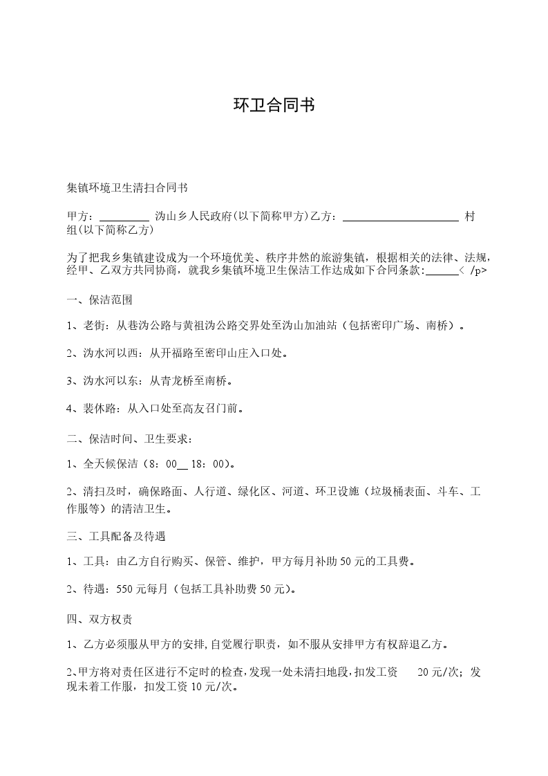 集镇环境卫生清扫合同书