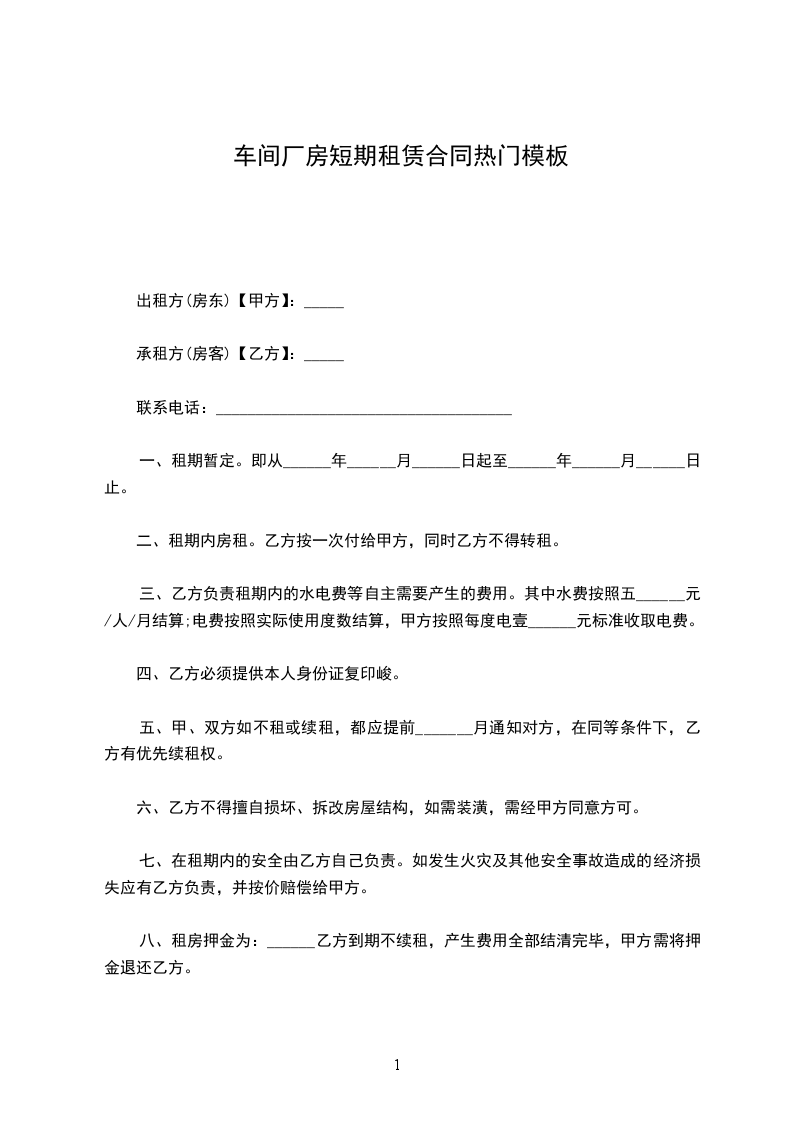 1、甲、乙双方约定,租赁的生产厂房______年租金:______________元/平方米,以后每______年递增__%。