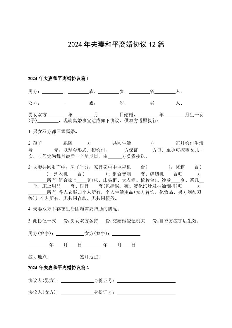 九、本协议一式________份,自婚姻登记处颁发离婚证之日起生效,男、女双方各执________份,婚姻登记机关存档一份。