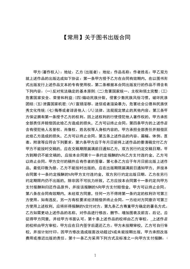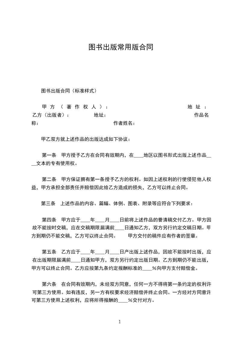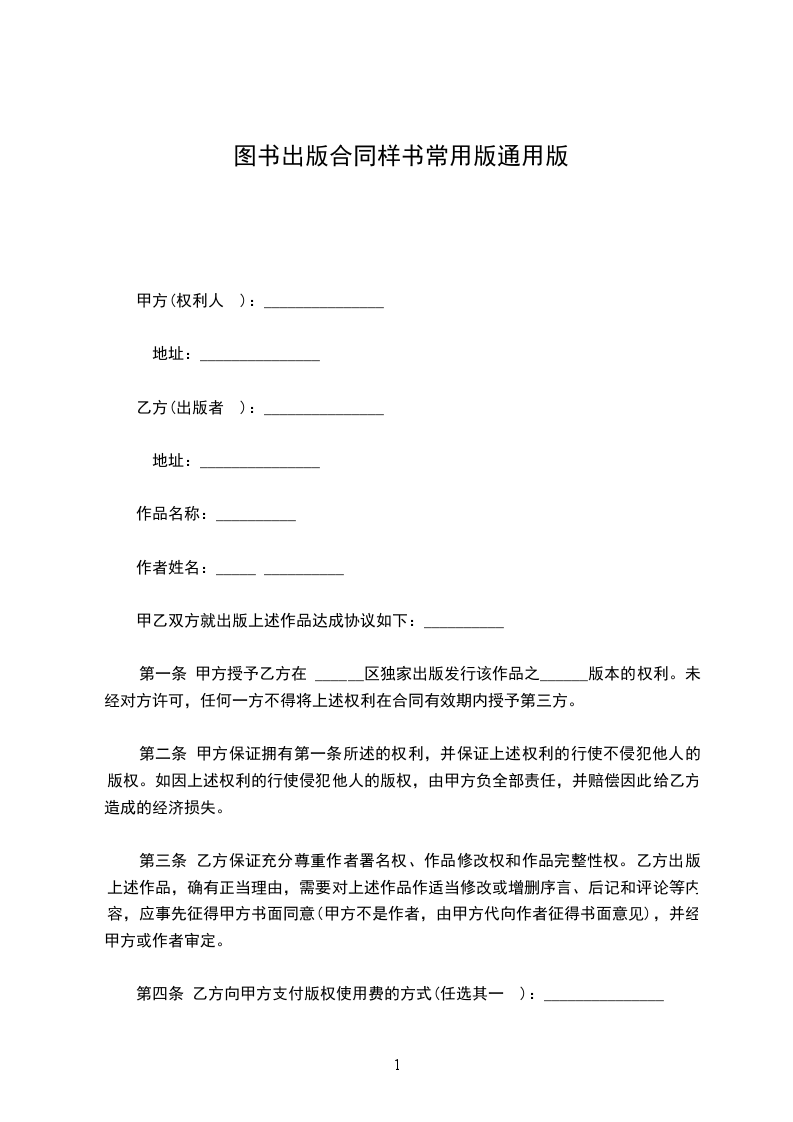第一条 甲方授予乙方在合同有效期内,在__地区以图书形式出版上述作品__文本的专有使用权。