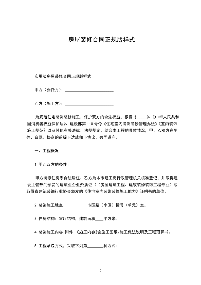 四、承包方式:包工完成装修,装修材料由甲方的自己购买。