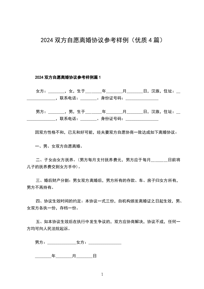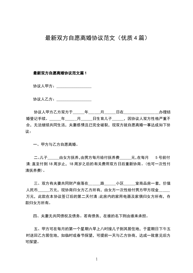 双方自愿协议离婚书怎么写篇4