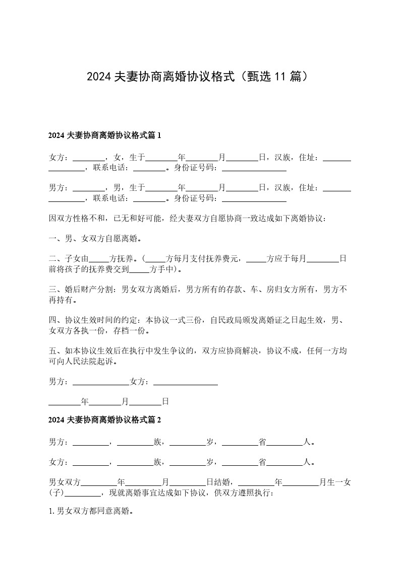 2024夫妻协商离婚协议格式篇11