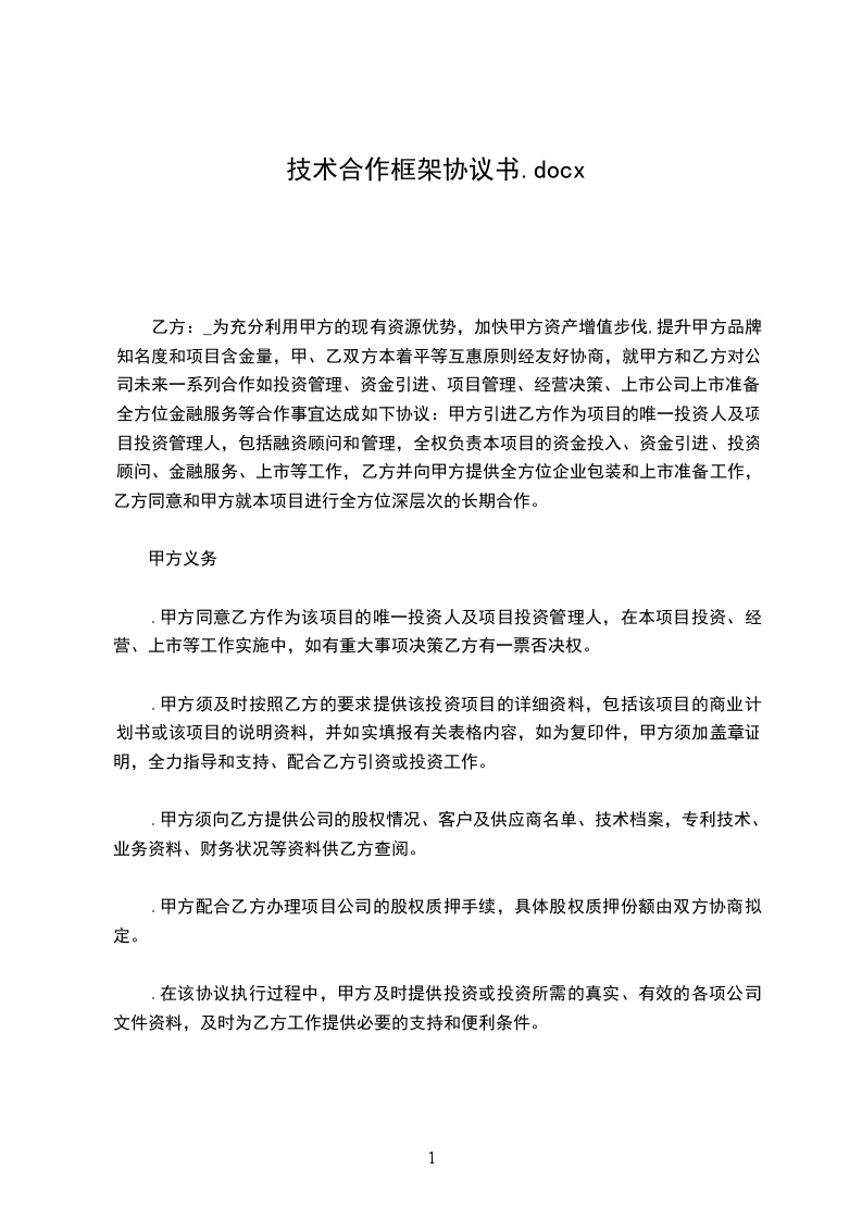 5.乙方在项目投资或融资过程中书面提出的问题和要求,甲方应在两(2)个工作日内作出书面回复。