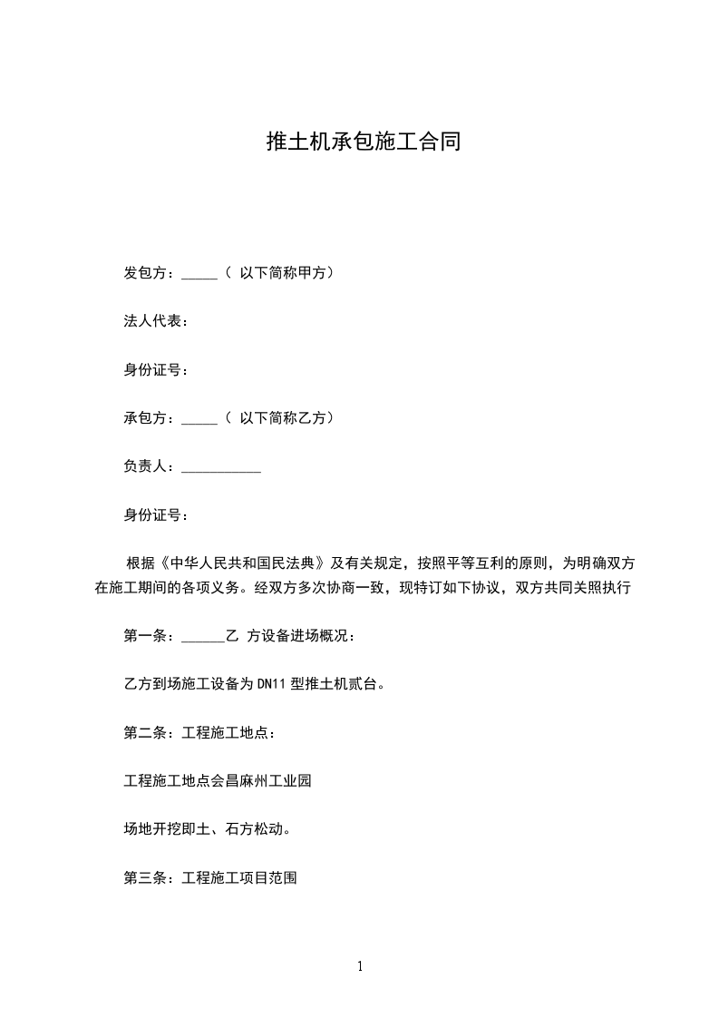 乙方到场施工设备为DN11型推土机贰台。