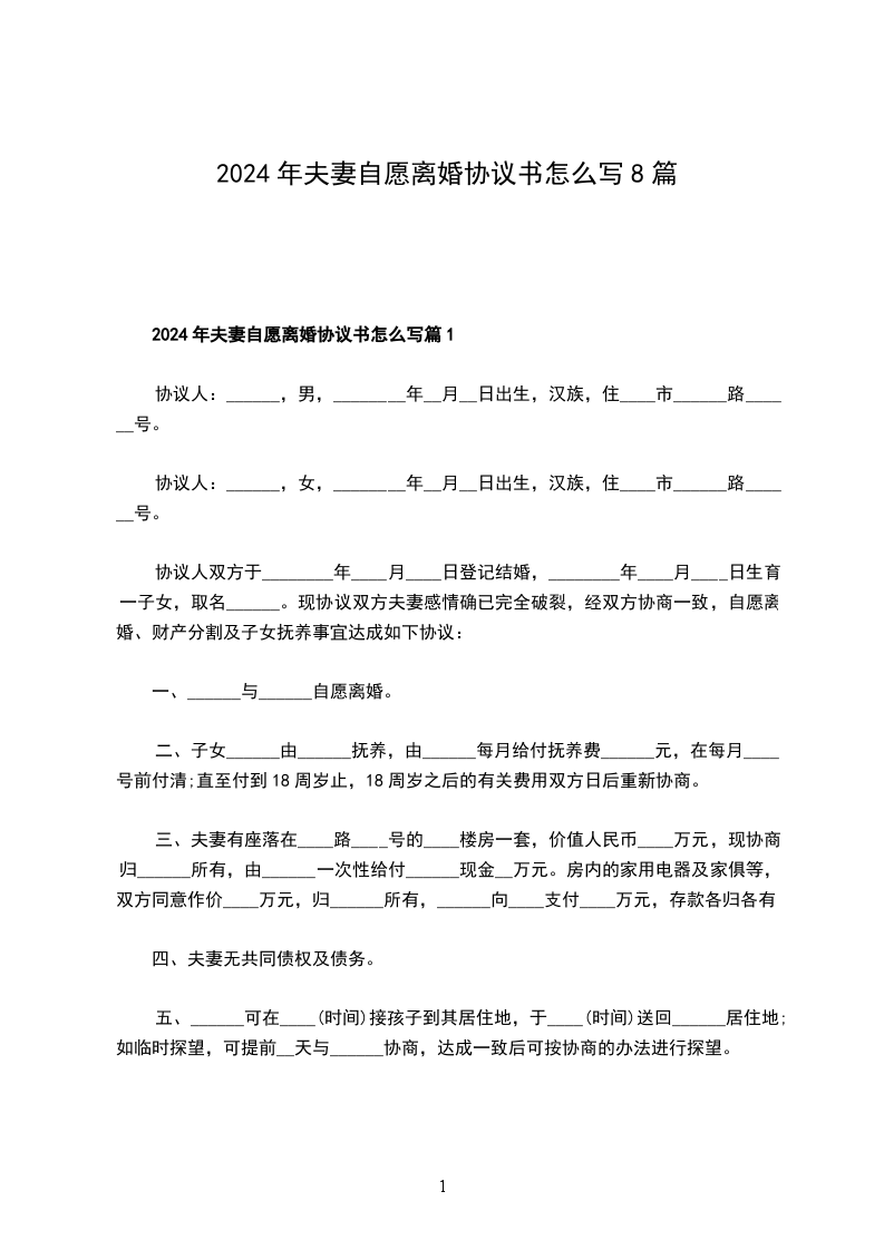 2024年夫妻自愿离婚协议书怎么写篇8