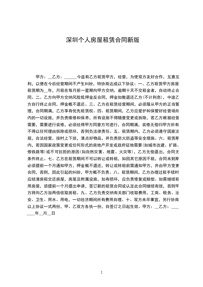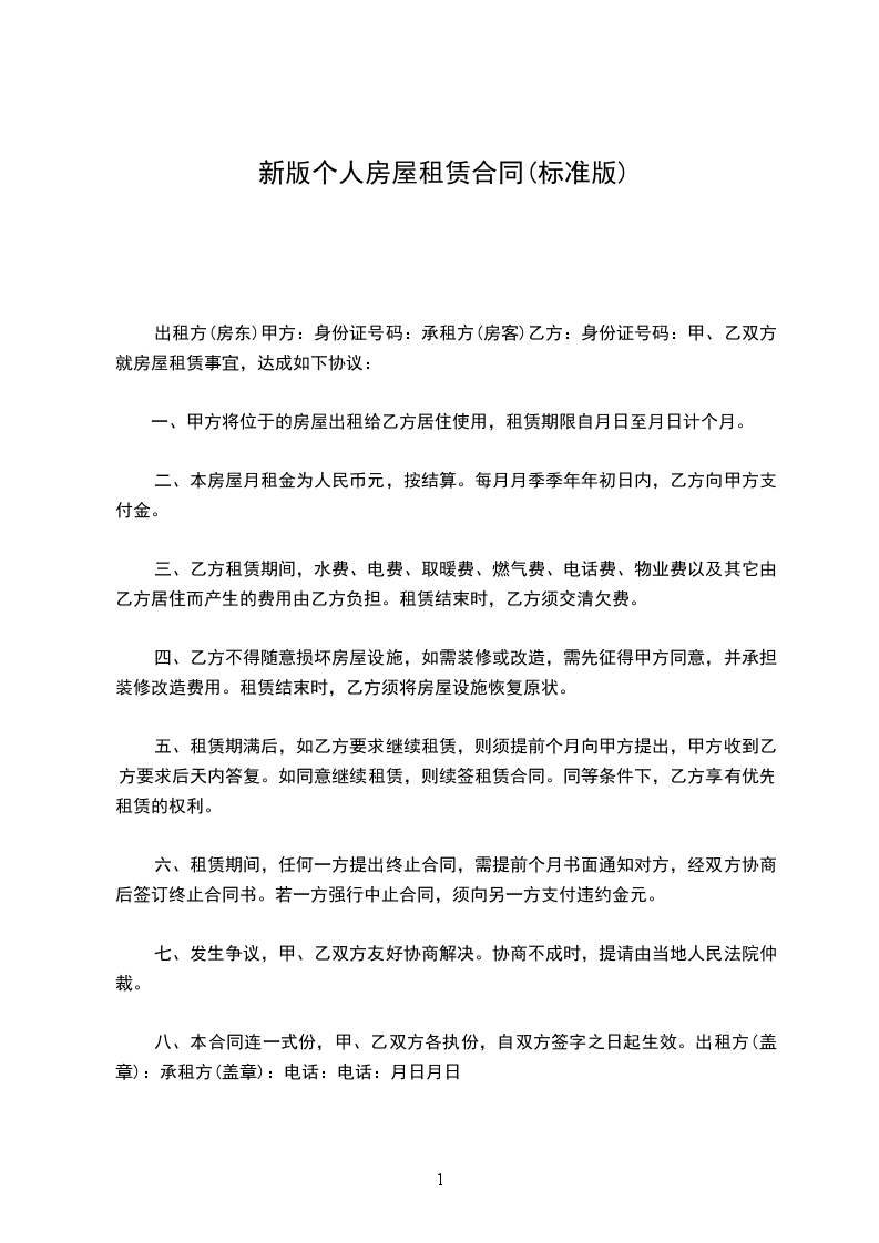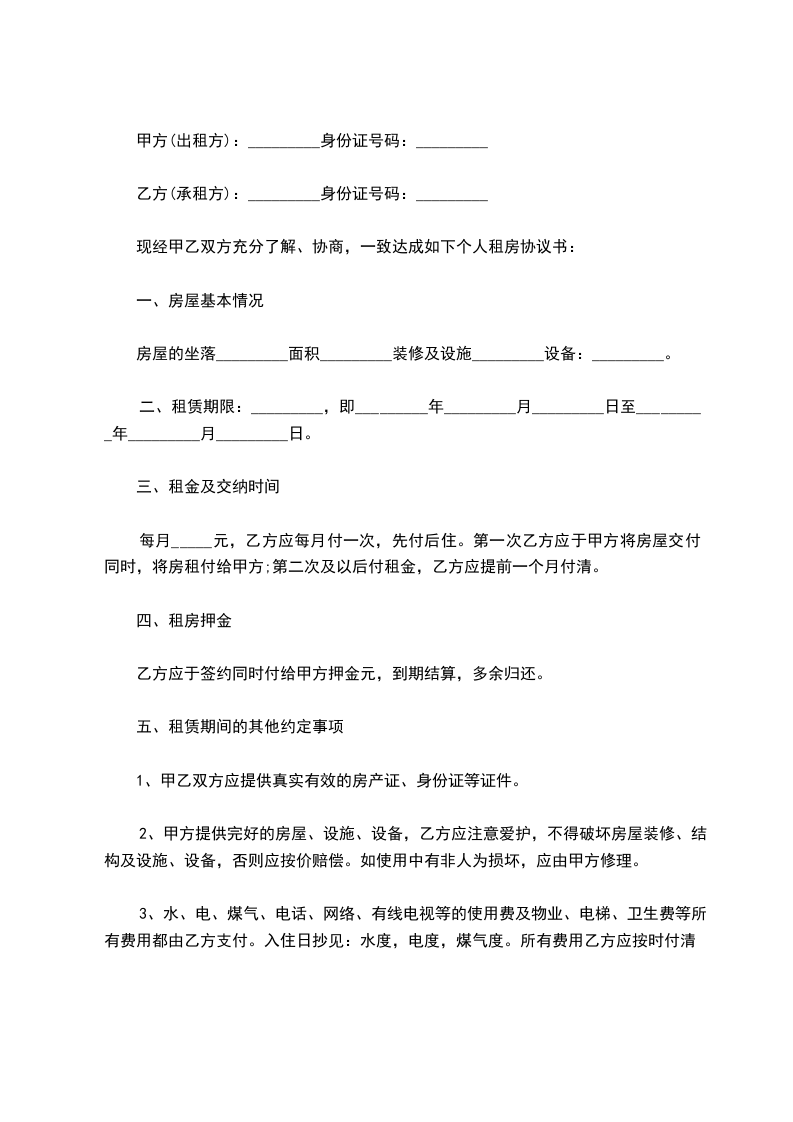 出租方:_____( 以下简称甲方)身份证号码:_________ 地址:_________ 联系电话:___________________ 承租方:_____( 以下简称乙方)身份证号码:_________ 地址:_________ 联系电话:___________________