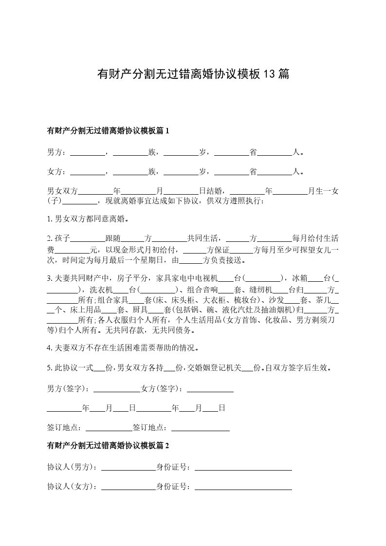 ⑴存款:双方名下现有银行存款共_元,双方各分一半,为_____元。分配方式:各自名下的存款保持不变,但男方/女方应于_____年___月___日前一次性支付_____元给女方/男方。