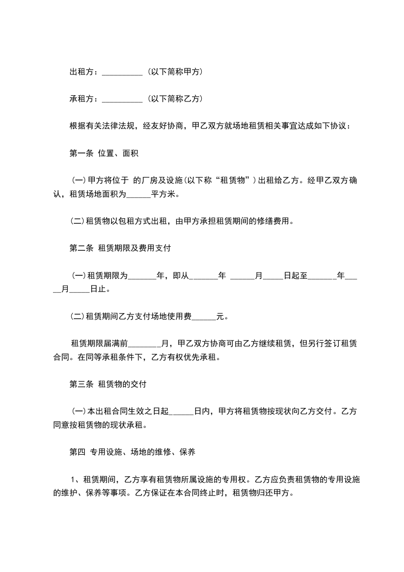 (一)甲方将位于 的厂房及设施(以下称“租赁物”)出租给乙方。经甲乙双方确认,租赁场地面积为______平方米。