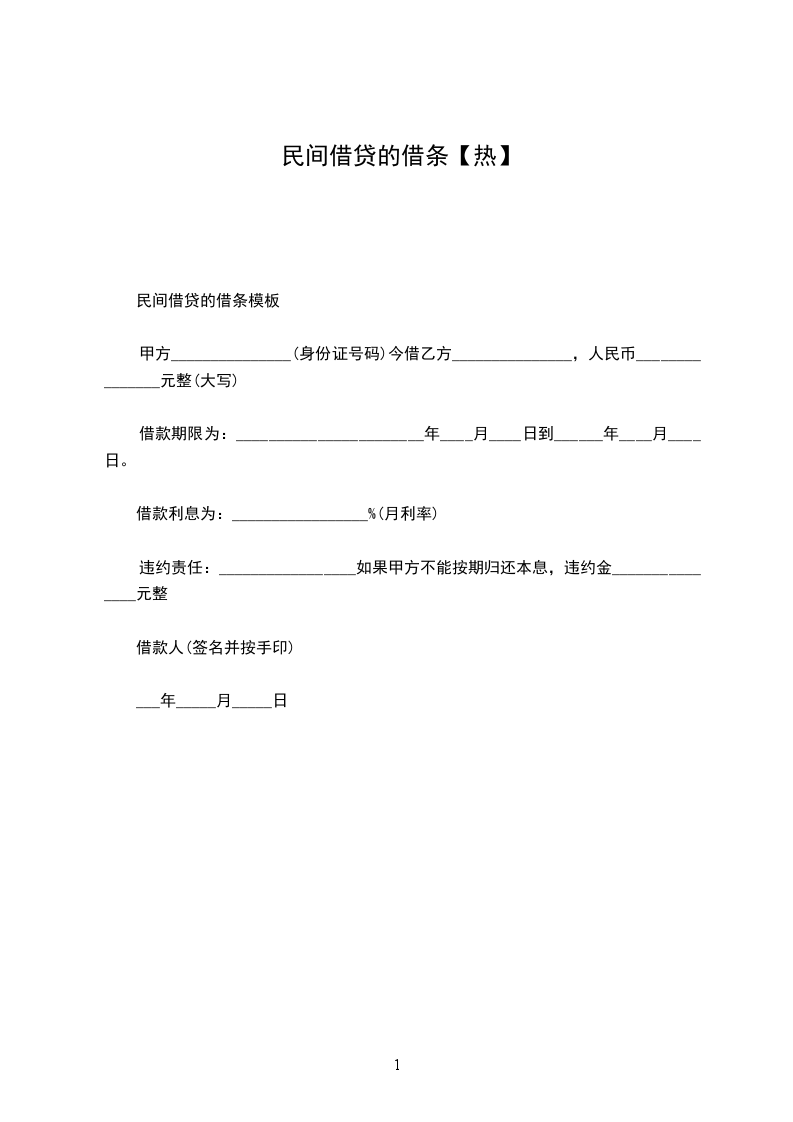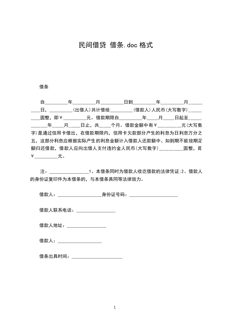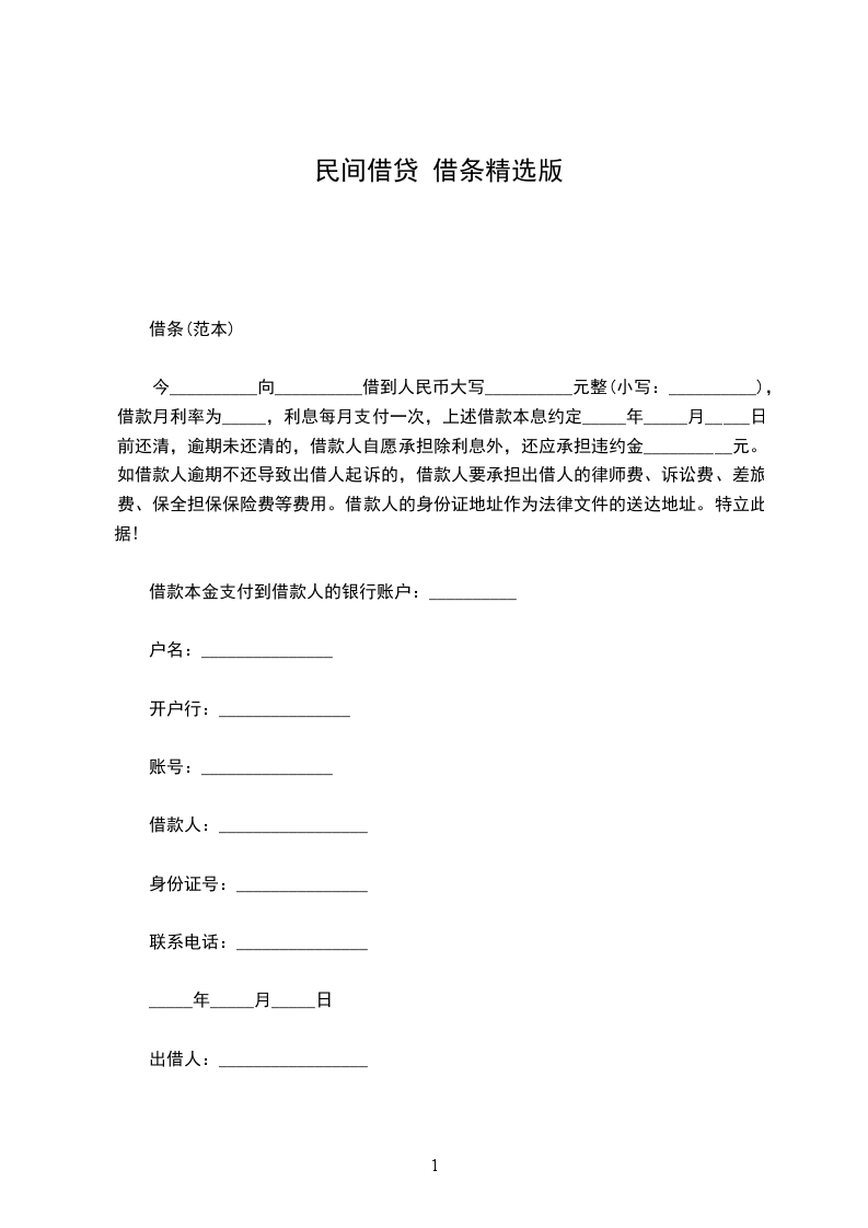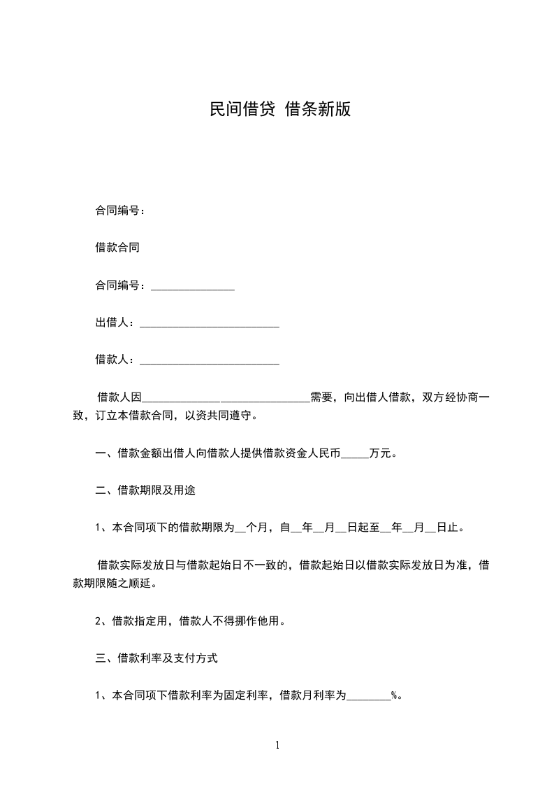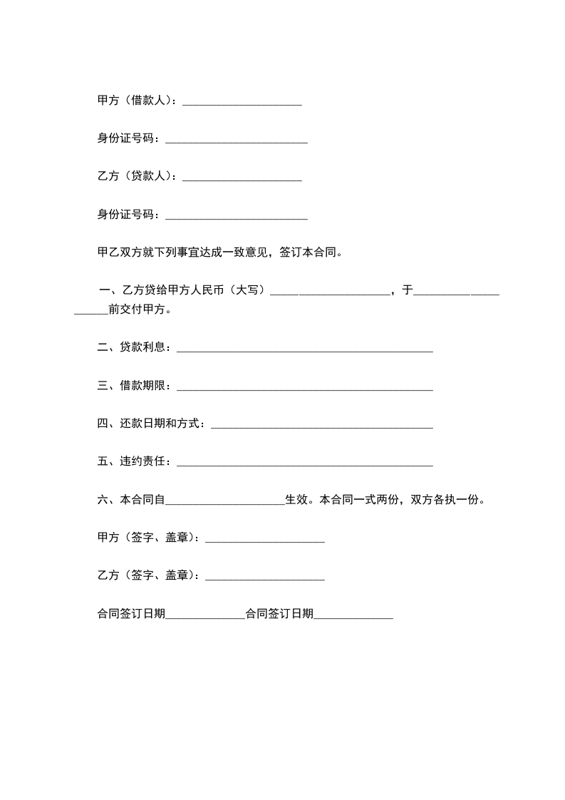 一、乙方贷给甲方人民币(大写)_____________________,于_____________________前交付甲方。