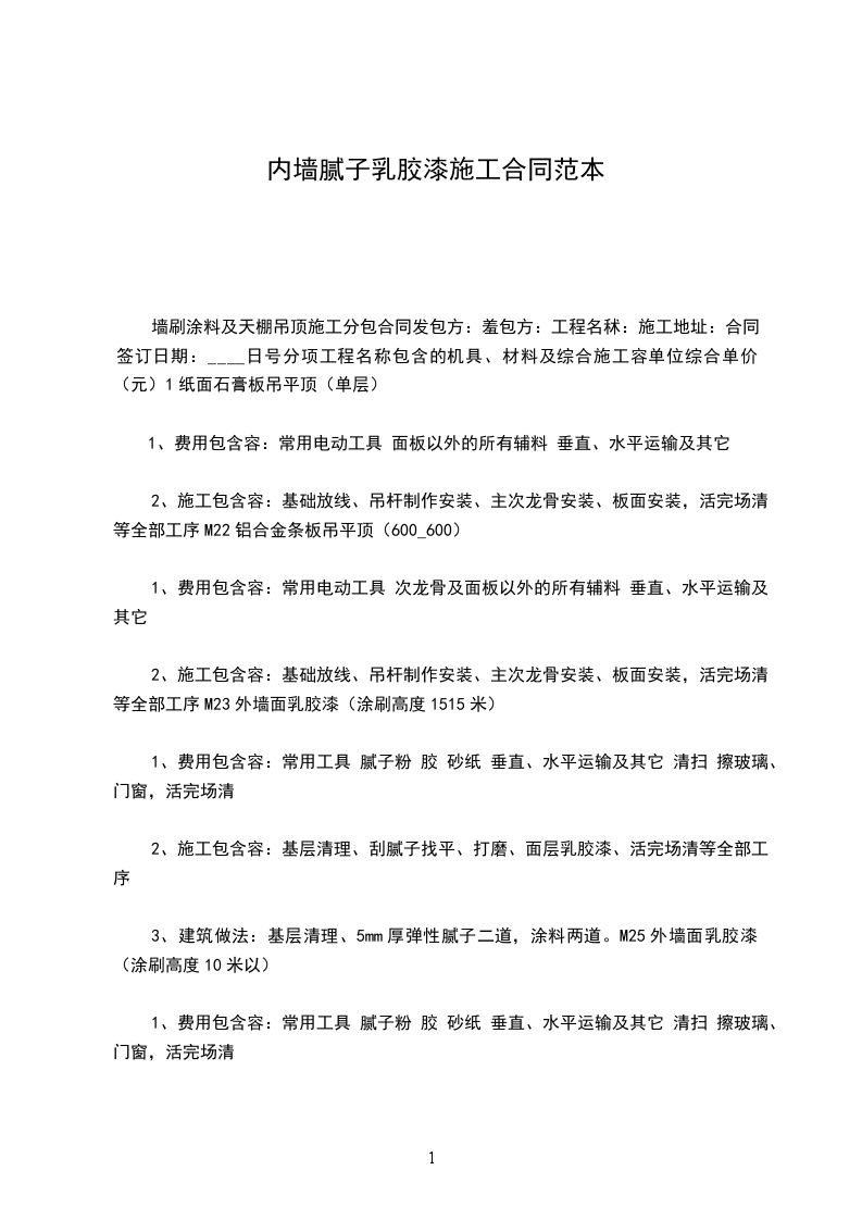 1、涂料分项工程甲方以“包工包料”形式承包给乙方,乙方不得以任何理由和借口转包或分包。如有转包或分包情况,一经发现,甲方有权扣除其质量保证金,并将乙方清退出场。已完工程按实际施工展开面积8元/米2的综合单价结算。