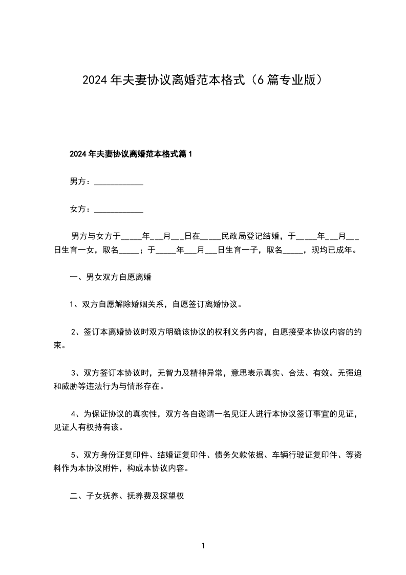 2024年夫妻协议离婚范本格式篇1