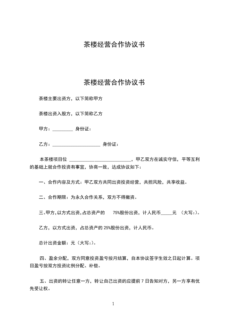 茶楼经营合作协议书