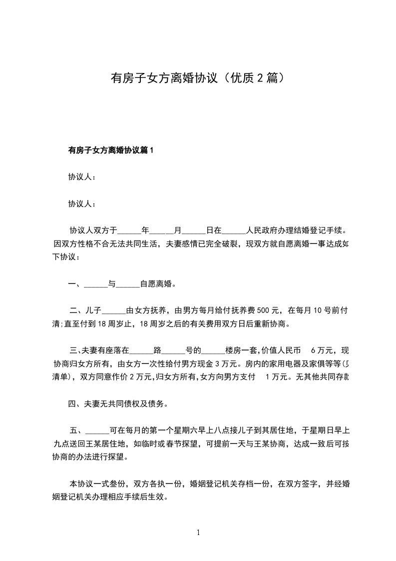 1、______地的1幢住房属双方共同财产,该房屋所有权证编号为__________________,该房屋归女方所有;
