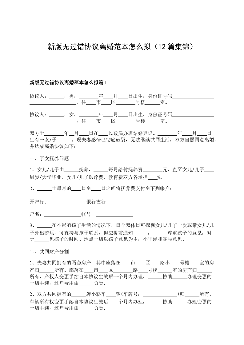 新版无过错协议离婚范本怎么拟篇11