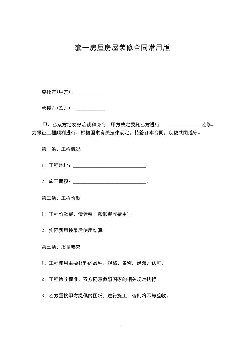 甲、乙双方经友好洽谈和协商,甲方决定委托乙方进行_________________装修。为保证工程顺利进行,根据国家有关法律规定,特签订本合同,以便共同遵守。