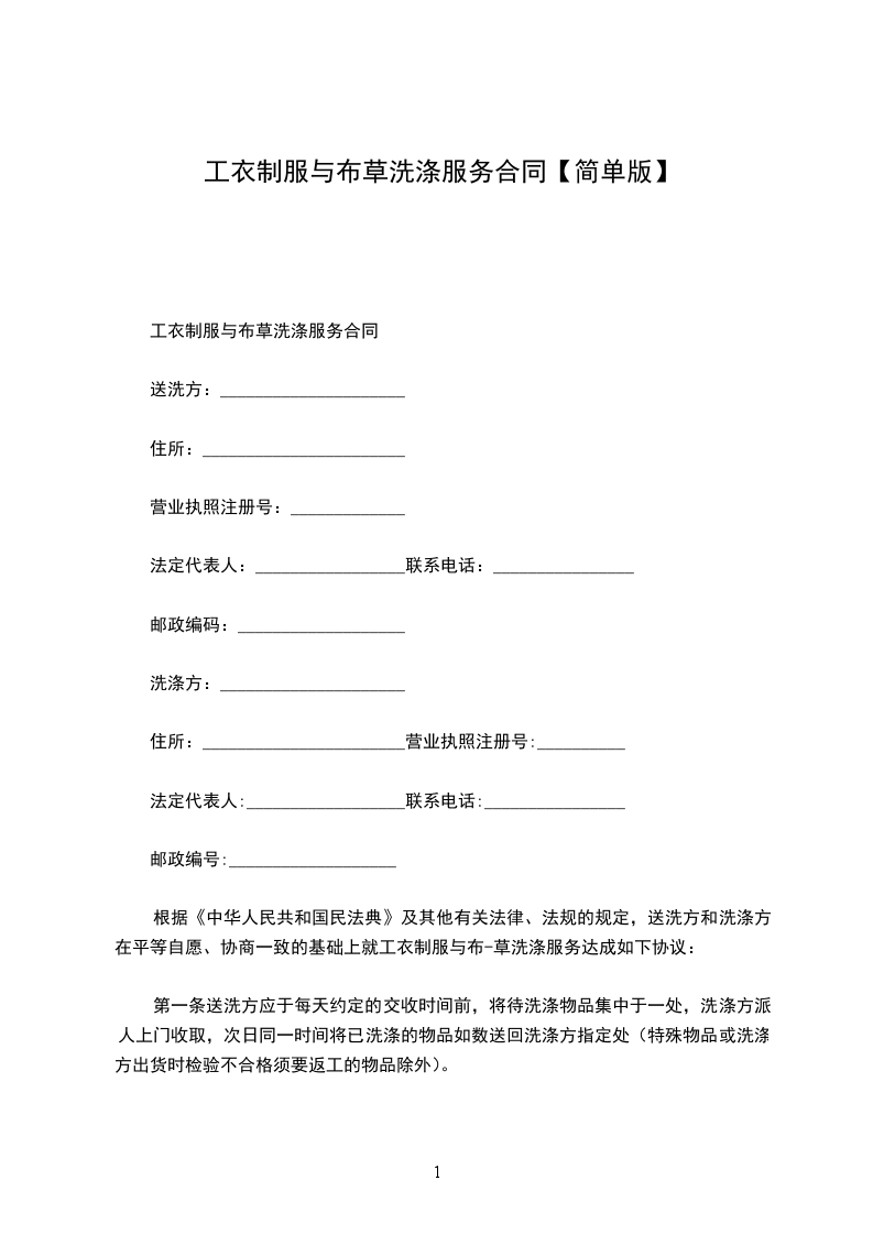 九、如乙方单位更改名称时,应告知甲方并结清前期洗涤款,双方再另签一份有效合同。