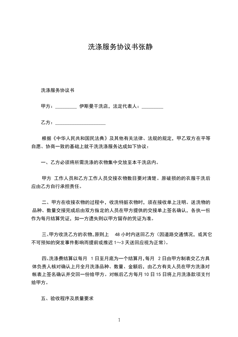 洗涤服务协议书