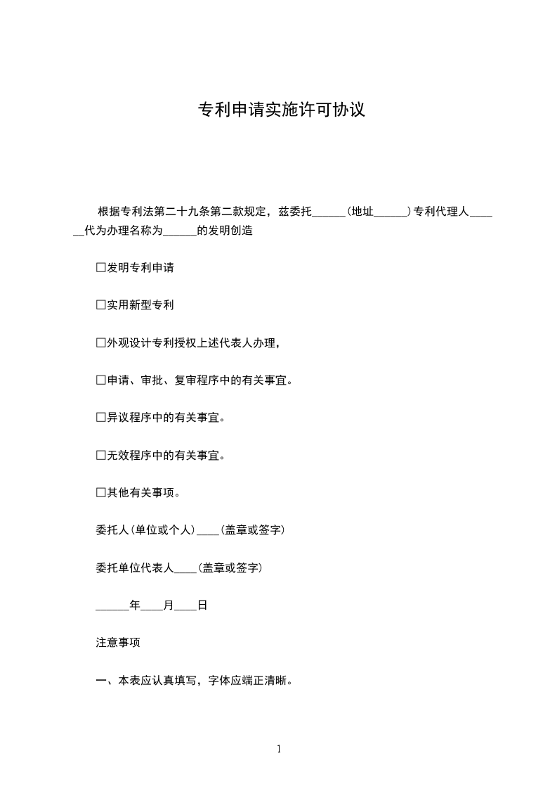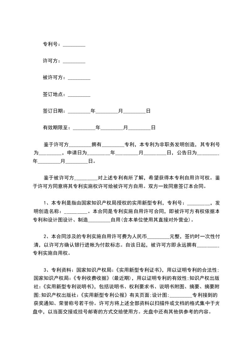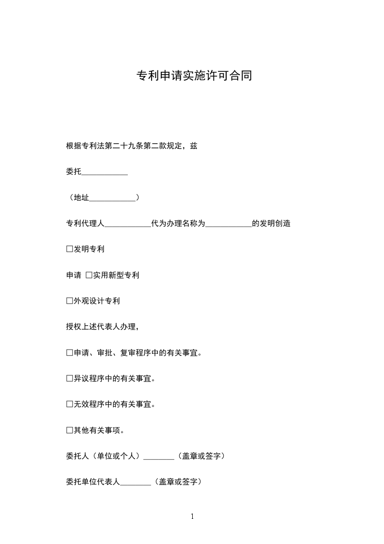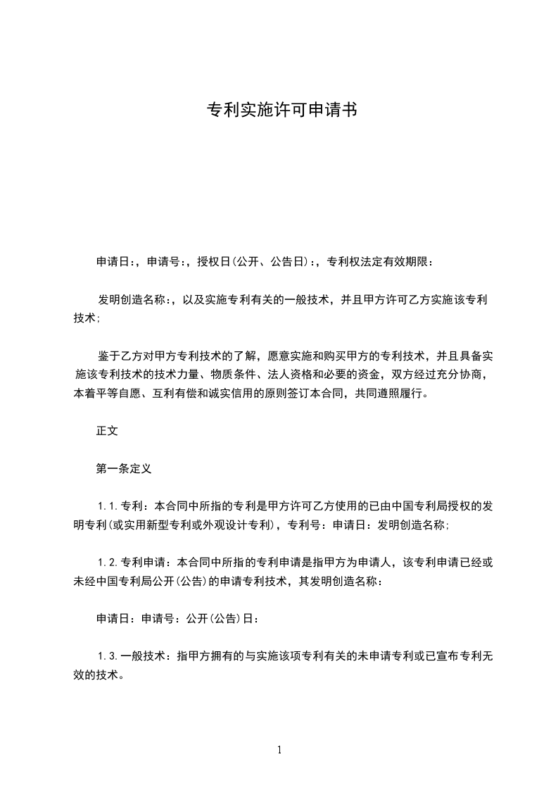 专利申请实施许可合同