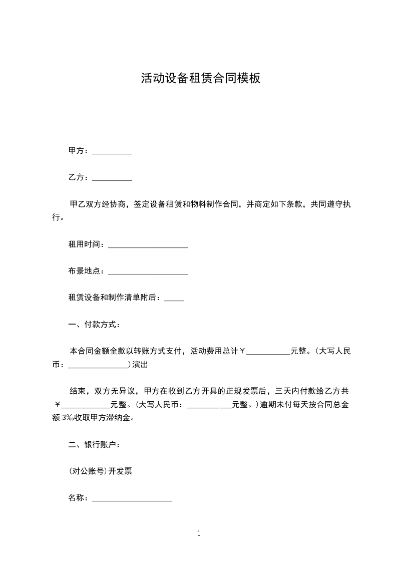 本合同金额全款以转账方式支付,活动费用总计¥___________元整。(大写人民币:_______________)演出