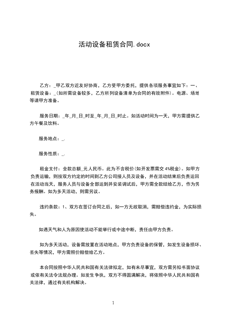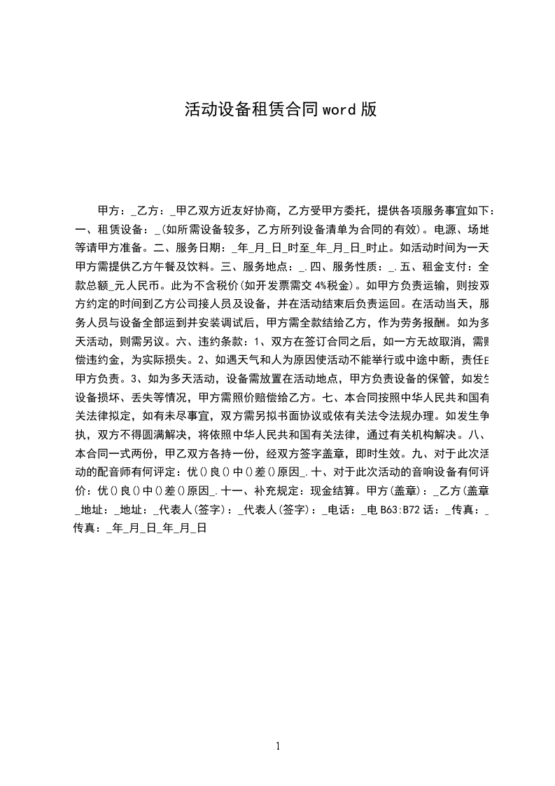 租赁设备和制作清单附后:_____