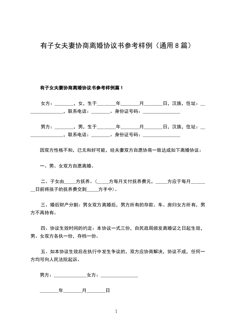 有子女夫妻协商协议离婚范本参考样例篇8