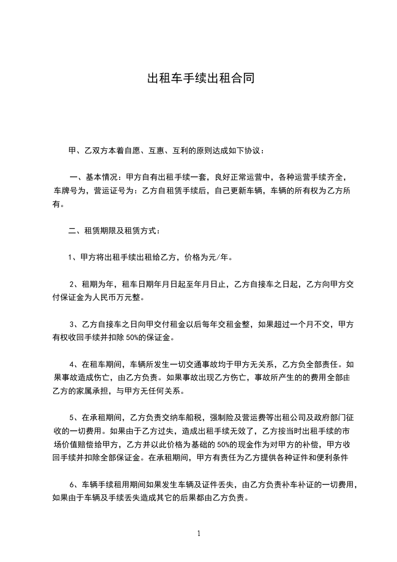 重要提示:_____( 1)交完定金后,乙方按运管处规定办理资格证及监督卡。