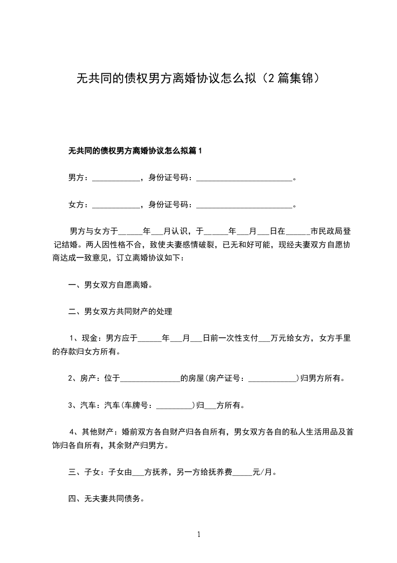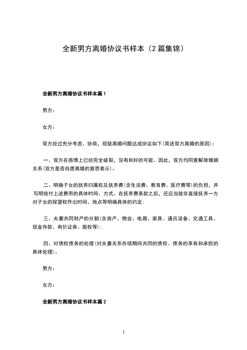全新男方协议离婚范本怎么拟篇2