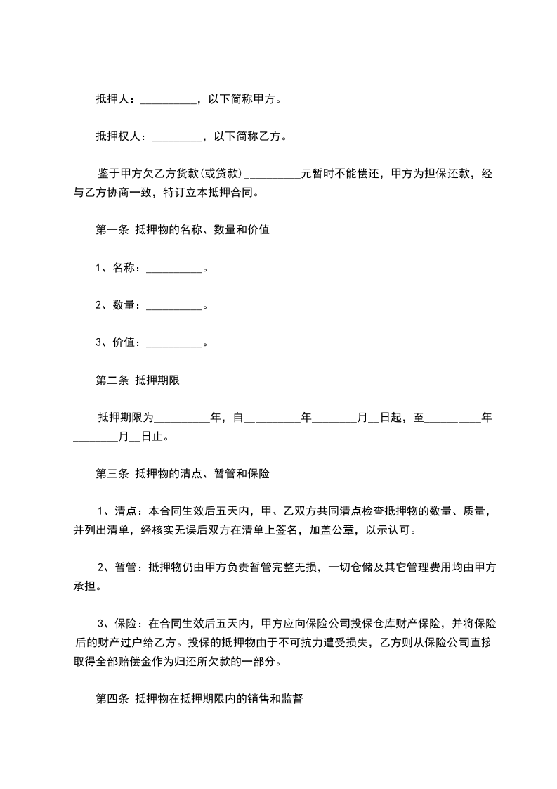 2、暂管:抵押物仍由甲方负责暂管完整无损,一切仓储及其它管理费用均由甲方承担。
