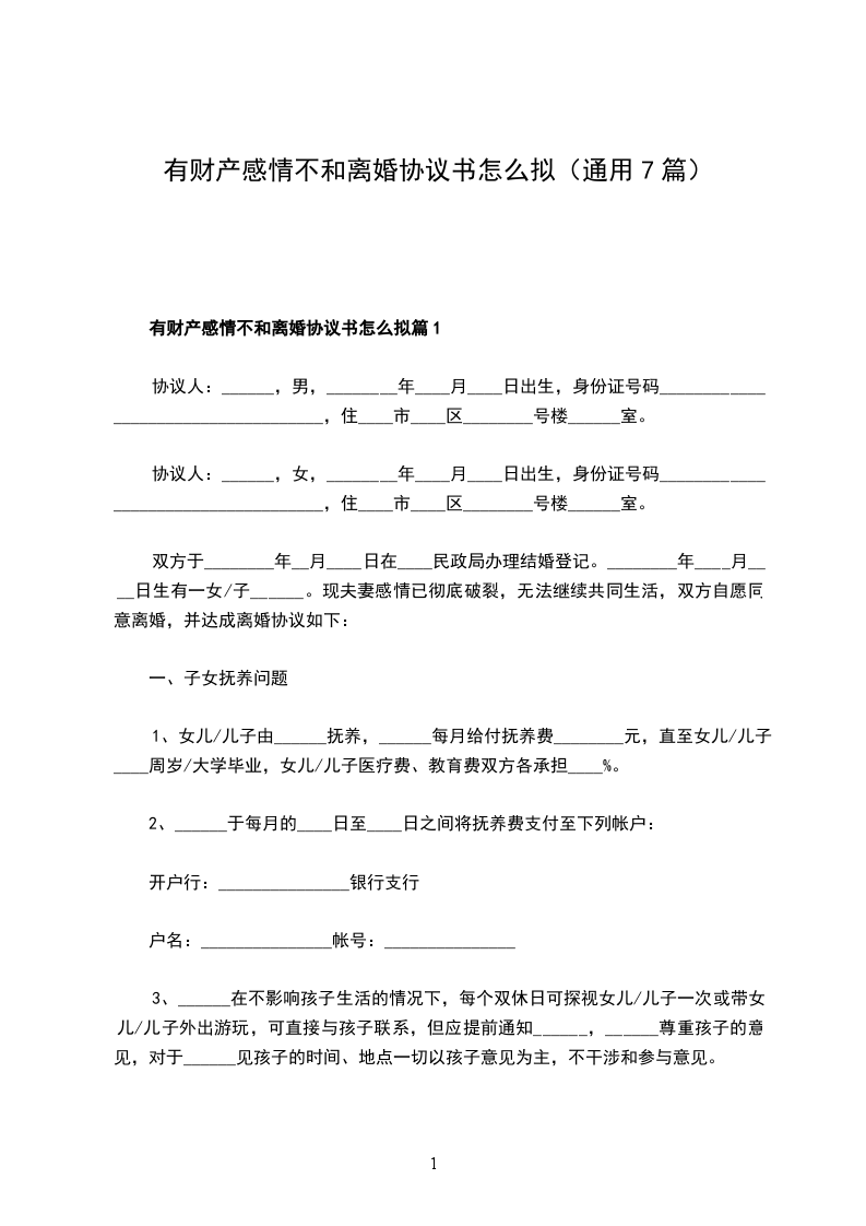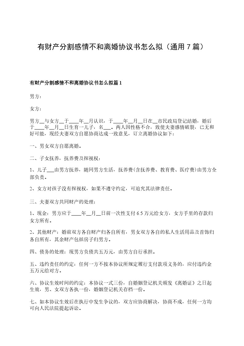 有财产感情不和离婚协议篇7