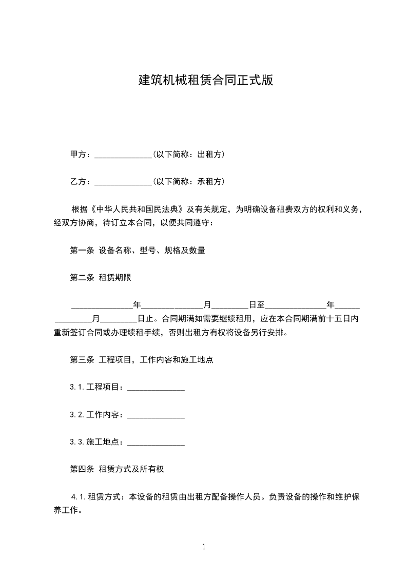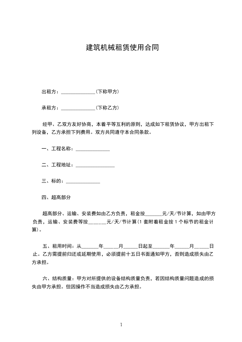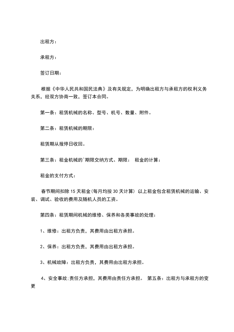 _______________年_______________月_________日至_______________年_______________月_________日止。合同期满如需要继续租用,应在本合同期满前十五日内,重新签订合同或办理续租手续,否则出租方有权将设备另行安排。